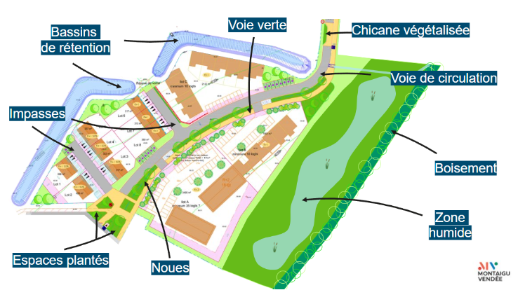 - Enfin, la zone humide de plus de 10 000 m² présente à l’est du quartier sera préservée.